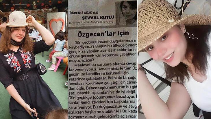 Ankara'nın Polatlı ilçesinde, eski hastane binasının 3'üncü katından düşerek ölen, 3 aylık evli Şevval Abanoz'un (21), 2015 yılında lise öğrencisiyken, Mersin'de üniversite öğrencisi Özgecan Aslan'ın öldürülmesinin ardından yerel gazetede 'Özgecan'lar için' başlığıyla yazdığı yazı ortaya çıktı. Abanoz, 7 yıl önce gazetede, "Biz Özgecan'ların ölmesini istemiyoruz. Onca genç kıza yapılan bu saldırılara karşı tavrımızı ortaya koyalım.Çünkü daha fazla sessiz kalırsak yeni facialara sebep olabiliriz.