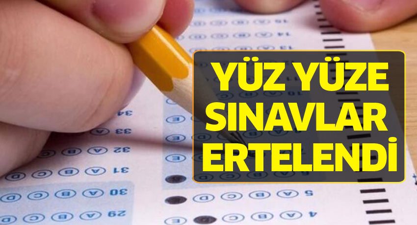 MEB'den yapılan son dakika açıklamasına göre yüz yüze eğitim sınavları ertelendi. Milli Eğitim Bakanı Ziya Selçuk, "Bu yıl, olağanüstü bir süreçten geçiyoruz Süreç hızlı değişiyor; kararlar, uzun değerlendirmeler doğrultusunda alınıyor. Bilim Kurulunun tavsiyeleri ve Sağlık Bakanlığımızın değerlendirmeleri doğrultusunda yüz yüze sınav konusunu yeniden ele aldık " diyerek alınan kararları duyurdu.