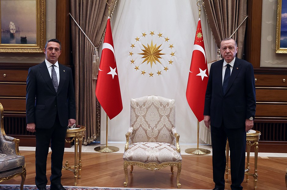 Cumhurbaşkanı Recep Tayyip Erdoğan, Fenerbahçe Spor Kulübü Başkanı Ali Koç'u külliyede ağırladı.