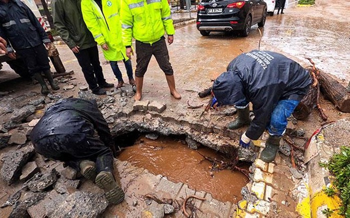 Marmaris'te dün sabah başlayıp 4,5 saat aralıklı devam eden sağanak, İçmeler Mahallesi'nde su taşkınlarına neden oldu. Siteler-İçmeler kara yolu, sel suları ve heyelan nedeniyle kapanan 5 kilometrelik kara yolu, Marmaris Belediyesi Fen İşleri ekiplerinin 45 dakikalık çalışmasıyla temizlenip tekrar trafiğe açıldı. Yazın meydana gelen yangınlarda zarar gören ormanlardan sel sularıyla taşınan dal, tomruk, taş, kaya parçaları ve çamurla kaplanan 5 sokak ile 2 cadde kepçe ve dozerlerle temizlendi, tazyikli sularla yıkandı. Kayabal Caddesi'nde yolun altından geçen ve sel sularının taşıdığı başta tomruk ve dal parçalarıyla dolan derenin çevresindeki betonlar kırılıp tıkanıklık giderildi. Belediye ekipleri, 1 apart otel, 14 ev, 3 iş yeri, tarla ve bahçelere taşkın nedeniyle dolan suları tahliye etti. Su taşkını nedeniyle maddi zarar gören vatandaşlar, tek tek tespit edildi.