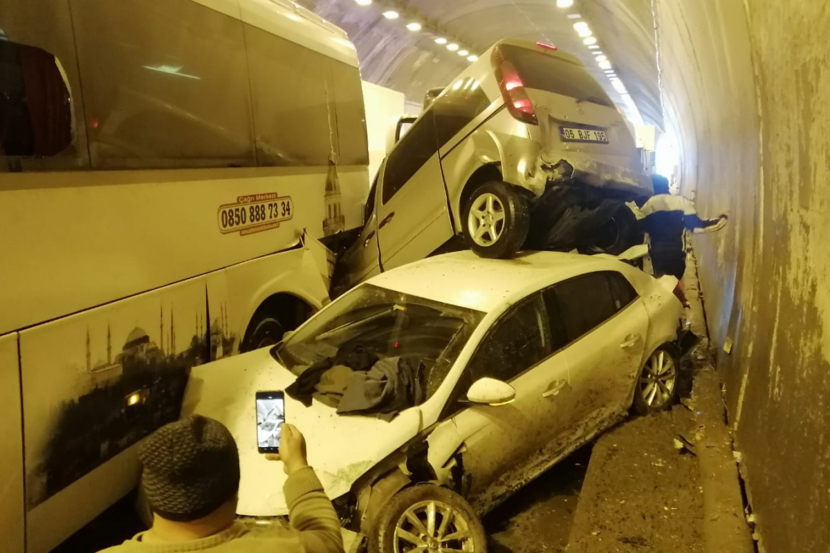 Bolu Dağı Tüneli İstanbul yönünde 18 aracın karıştığı zincirleme trafik kazasında 2’si ağır 31 kişi yaralandı. Kaza sebebiyle trafiğe kapanan Bolu Dağı Tüneli 5 buçuk saatlik çalışmayla açıldı.