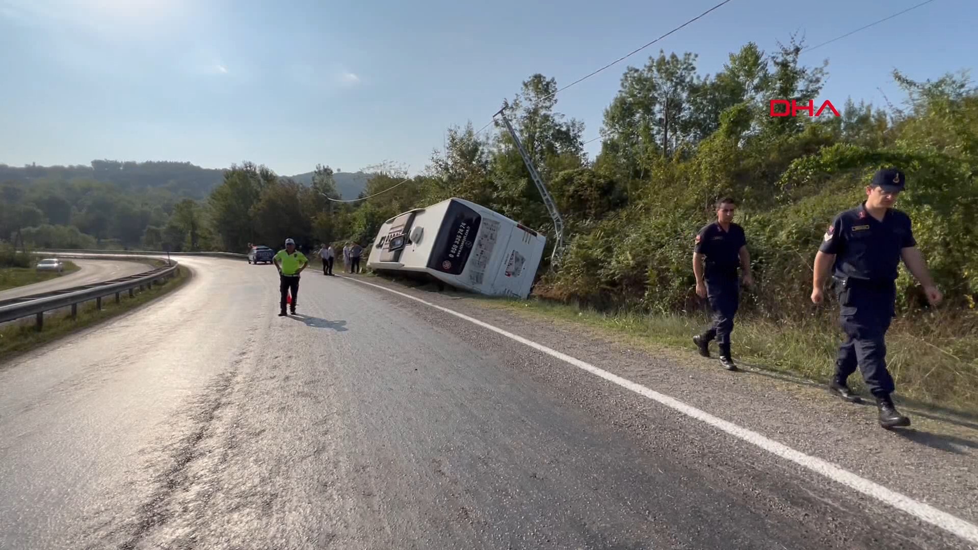 Bartın’da, virajda sürücüsünün kontrolünü kaybettiği otobüsün elektrik direğine çarptıktan sonra devrilmesi sonucu 4 kişi yaralandı.