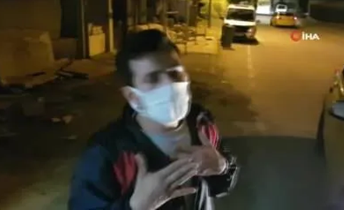 Serdar A. araç içinde tutanak düzenleyen polise sarılıp öpmeye çalışırken, başka bir memur, "Pandemi var" diyerek kendisini uzaklaştırdı. "Birbirimize yaklaşmayalım" diyen polisler tutanak düzenledikleri Serdar A.'ya kolonya da ikram etti.