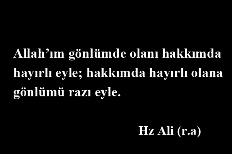 - “Allah’ım gönlümde olanı hakkımda hayırlı eyle; hakkımda hayırlı olanı gönlümü razı eyle.” Hz. Ali (r.a)
