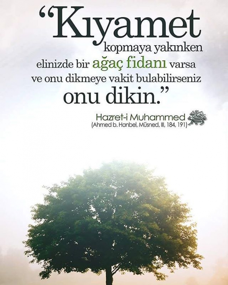 - “ Kıyamet kopmaya yakınken ağaç fidanı varsa ve onu dikmeye vakit bulabilirseniz onu dikin.” Hazret-i Muhammed (s.a.v)
