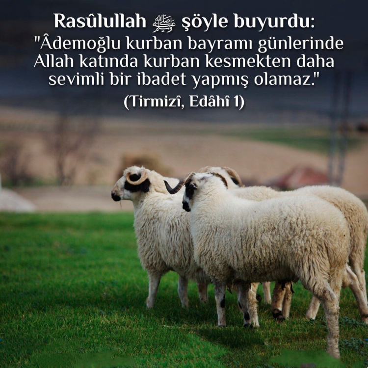 - Rasûlullah şöyle buyurdu: “Ademoğlu kurban bayramı günlerinde Allah katında kurban kesmekten daha sevimli bir ibadet yapmış olamaz.”