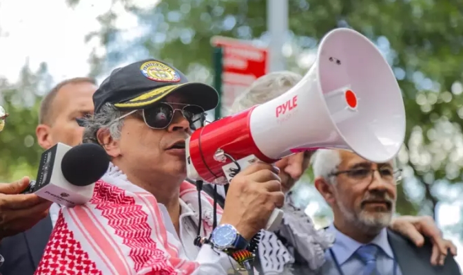 Petro, Times Meydanı'nda düzenlenen Filistin'e destek eylemine katılmıştı.