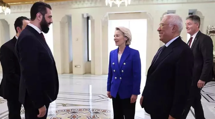 Avrupa Birliği Komisyonu Başkanı Ursula von der Leyen ve AB Konseyi Başkanı Antonio Costa, Suriye Cumhurbaşkanı Ahmed Şara ile Şam’da bir araya geldi.