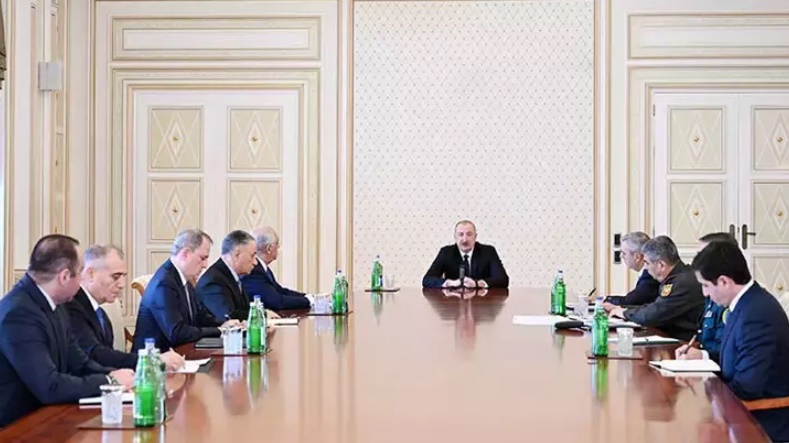 Azerbaycan Cumhurbaşkanlığı, Azerbaycan Güvenlik Konseyi’nin Cumhurbaşkanı İlham Aliyev'in başkanlığında toplandığını duyurdu. Aliyev, toplantıda yaptığı açıklamada, Azerbaycan'ın Nahçıvan Özerk Cumhuriyeti'ne yapılan saldırının doğrudan İran kaynaklı olduğunu söyledi. Orduya misilleme hazırlığı yapılması talimatı verdiğini kaydeden Aliyev, “Bugün İran tarafından Azerbaycan topraklarına karşı bir terör eylemi gerçekleştirildi. Misilleme tedbirleri hazırlama ve uygulama talimatı verildi. Ordu birinci seviye seferberliğe geçirildi ve her türlü operasyonu gerçekleştirmeye hazır olmalıdır. Sorumlular derhal adalete teslim edilmelidir” ifadelerini kullandı.
