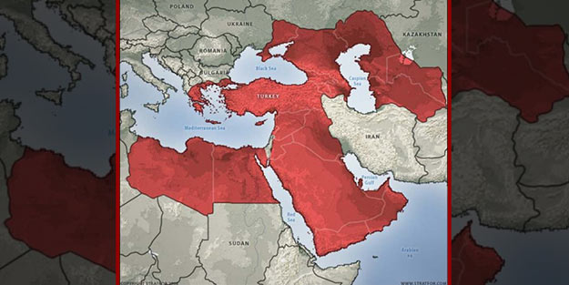 Amerikan Savunma Bakanlığı birimleriyle birlikte özel kuruluşlara da kritik istihbarat satan, aynı zamanda gayri resmi CIA olarak da anılan bir kuruluş olan Stratfor'un söz konusu haritasında, 2050 yılında Türkiye'nin etki alanındaki ülkeler şunlar: