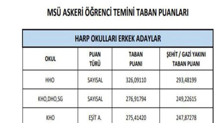 KARA Harp Okulu Puan Türü: SAYISAL Taban Puan: 349,45152
