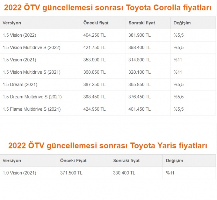 ÖTV oranlarının güncellenmesi sonrası markalar yeni fiyat listelerini yayınlamaya başladı. Peki hangi Toyota modellerinde ÖTV indirimi yapıldı? İşte liste fiyatları...