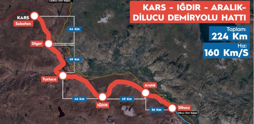 Zengezur Koridoru’nun, önemli bir parçası olacak Kars-Iğdır-Aralık-Dilucu Demir Yolu Hattı’nda temeli bugün Ulaştırma ve Altyapı Bakanı Abdulkadir Uraloğlu’nun katıldığı törenle atıldı. Cumhurbaşkanı Recep Tayyip Erdoğan tören kapsamında yazılı bir mesaj yayımladı. Cumhurbaşkanı Erdoğan, Kars-Iğdır-Aralık-Dilucu Demiryolu Hattı’nın Türkiye ve bölge için hayırlara vesile olmasını temenni etti. Türkiye ile Azerbaycan arasındaki yeni ulaşım bağlantısını sağlayacak olan bu hattın, Türkiye ile Nahçıvan ve Azerbaycan arasında köprü vazifesi görecek çok önemli bir kalkınma hamlesi olduğunu dile getirerek, açıklamasında şu ifadelere yer verdi: "Proje büyüklüğü 2,4 milyar Avro, toplam uzunluğu 224 kilometre olan yeni demiryolu hattımız; 5 istasyon, 5 tünel, 19 aç-kapa tünel, 10 köprü, 3 viyadük, 144 altgeçit, 27 üstgeçit ve 480 menfezden oluşuyor. Zengezur geçişi Demiryolu Hattı üzerinden Azerbaycan ile Güneydoğu ve Akdeniz bölgelerimizi; Hazar ile Akdeniz havzasını birleştirecek Kars-Iğdır-Aralık-Dilucu Demiryolu Hattımızın tamamlanması, bölgesel iş birliği ve kalkınmaya çok güçlü bir ivme kazandıracaktır."