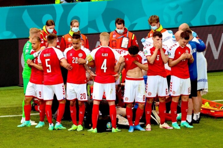Danimarka-Finlandiya maçında Christian Eriksen sahada yere yığıldı. Kalbi duran oyuncuya sağlık ekipleri tarafından kalp masajı uygulandı. Yapılan ilk yardımın ardından Eriksen, sedye ile dışarı çıkartılırken bilincinin açık olduğu görüldü.