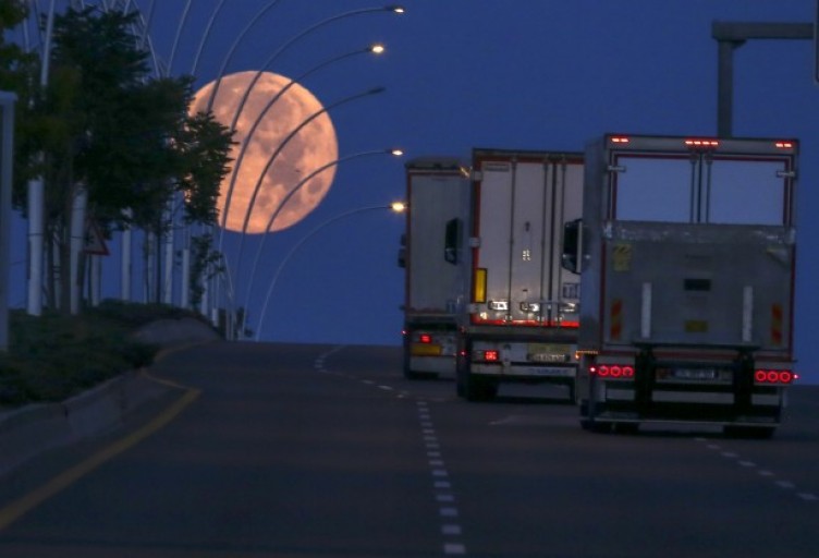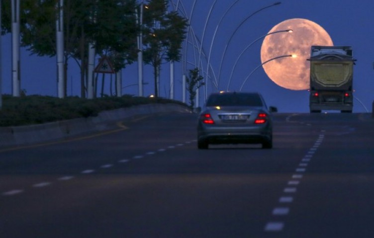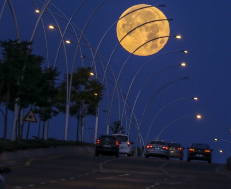 Başkent Ankara'da sabah saatlerinde günün ilk ışıklarıyla hareketlenen caddeler, dolunay ile güzel görüntü oluşturdu.