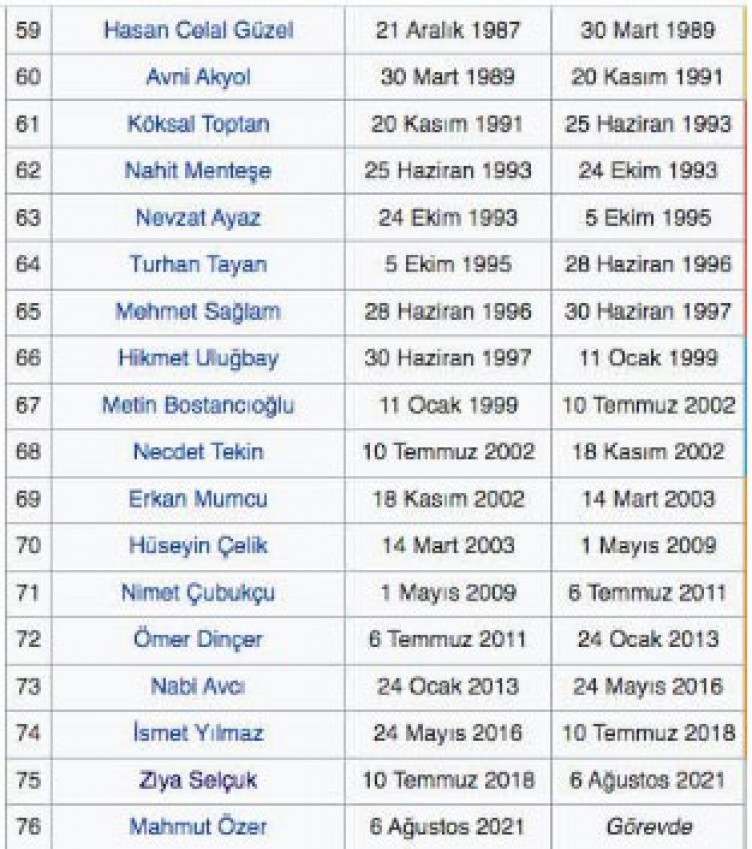 Ziya Selçuk’tan veda paylaşımı: Milli Eğitim Bakanlığı görevinden affını isteyen Ziya Selçuk, sosyal medya hesabından bir teşekkür mesajı yayımladı. Görevi yardımcası Mahmut Özer’e devreden Ziya Selçuk, "Bana ülkemin çocukları için çalışma imkanı sağlayan Cumhurbaşkanımız Sayın Recep Tayyip Erdoğan'a şükranlarımı sunuyorum. Milletimize, eğitim ailemize, birlikte görev yaptığım Bakan arkadaşlarıma teşekkür ediyorum" dedi. İşte geçmişten günümüze Milli Eğitim Bakan isimleri: