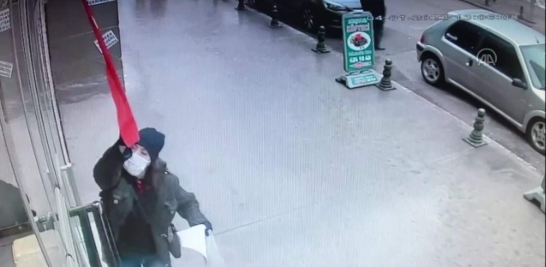 İş yeri sorumlusu Uğur Güneş, yaptığı açıklamada, bir kadının cama yaklaşarak bayrağa saldırdığını söyledi.