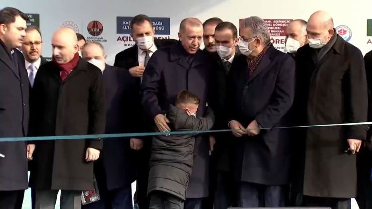 Cumhurbaşkanı Erdoğan, Trabzon'da Toplu Açılış Töreni'ne katıldı. Erdoğan, konuşmasını gerçekleştirdikten sonra beraberindeki heyeti ve Bakanları kurdele kesme töreni için sahneye davet etti. Başkan Erdoğan, sahneye çıkmak için uzun süre ağlayan küçük çocuğu da sahneye davet etti.