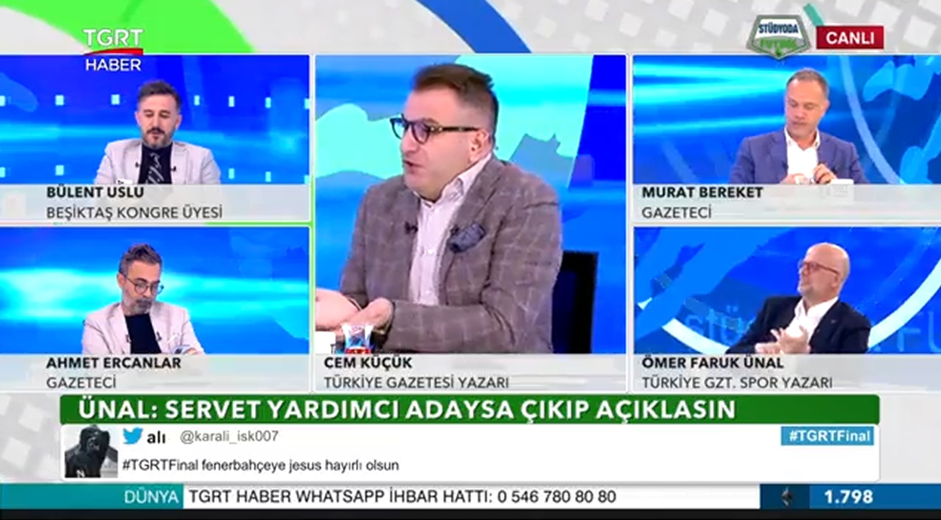 TGRT Haber ekranlarında yayınlanan Stüdyo'da Futbol programındaki cümleler gündeme etkisini gösterdi... Cem Küçük'ün Beşiktaş ile ilgili söylemi 'Çarşı'yı grubunu ayaklandırdı. Cem Küçük'ün canlı yayın sırasında "Siyaset istemese Beşiktaş mı kalır ortada ya?" sözleri sonrası Beşiktaş camiası küplere bindi...