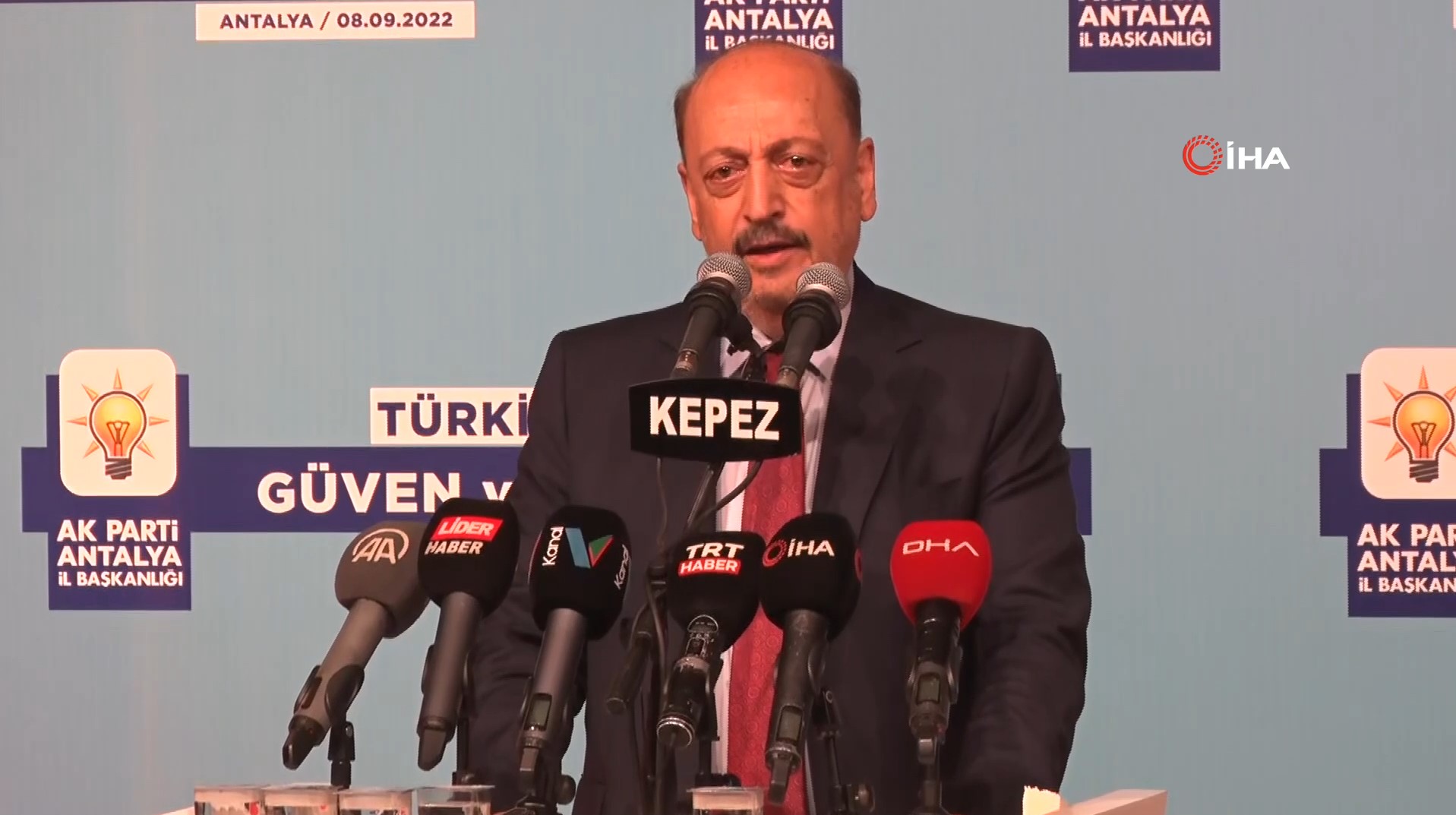 AK Parti Antalya il başkanlığı tarafından organize edilen "Türkiye için güven ve istikrar" sloganı çerçevesinde yapılan rozet takma töreni Erdem Beyazıt Kültür Merkezinde gerçekleştirildi. Toplantıya katılan Çalışma ve Sosyal Güvenlik Bakanı Vedat Bilgin, gündeme dair önemli açıklamalarda bulundu.
