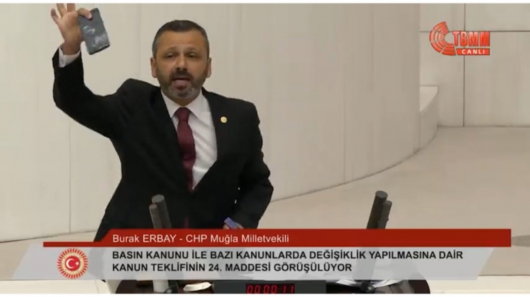 Basın Kanunu görüşmelerinde teklife kendince tepki gösteren CHP'li vekil Burak Erbay, kürsüde cep telefonunu kırarak gençlere gözdağı verdi… "Kanun kabul edilince ihtiyacınız kalmayacak" şeklindeki sözleri ile yeni kanunda yalan söyleyemeyeceklerini anlayınca kendince sinirlendi…