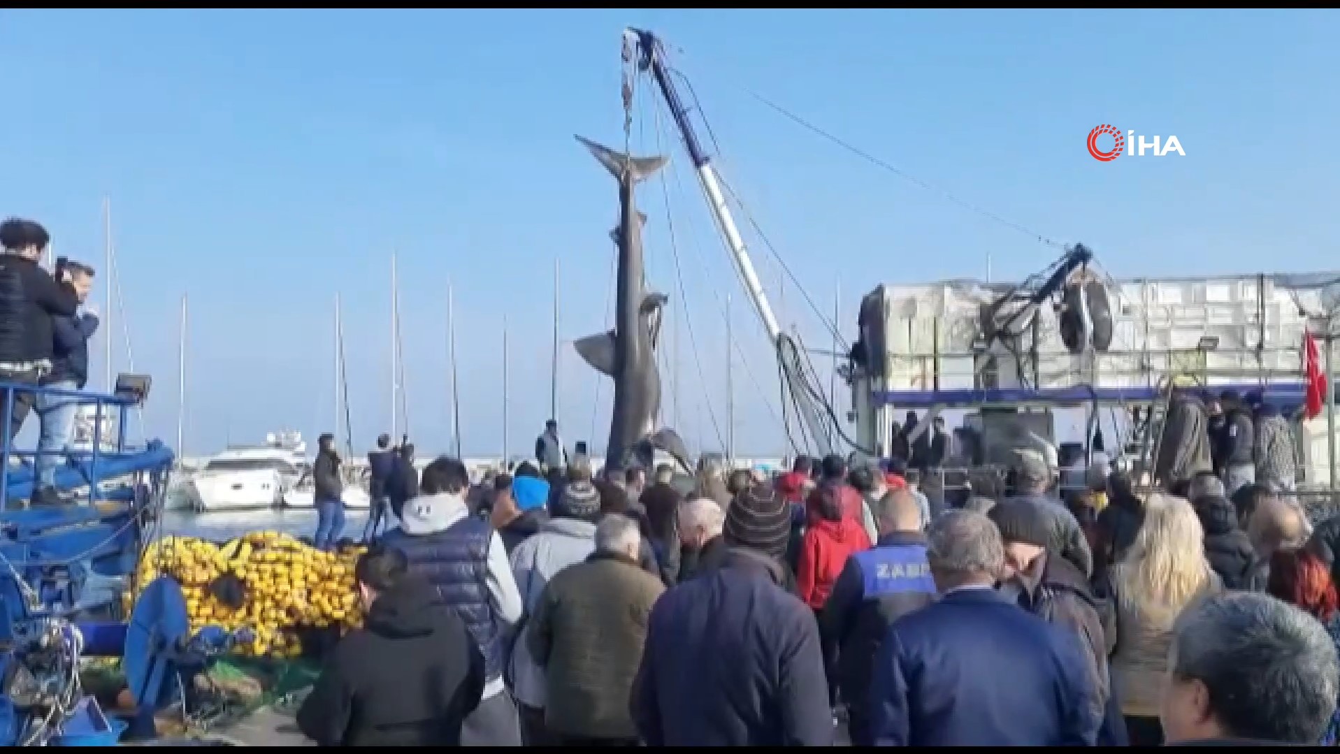 İzmir'in Urla ilçesi açıklarında bir balıkçının ağına takılan 10 metre boyunda ve 2 ton ağırlığındaki köpekbalığı, görenleri şaşkına çevirdi. İskele Limanı'nda karaya çıkartılan köpekbalığı cinsinin ise 'Güneşlenen Köpekbalığı' olarak da bilinen Büyük Camgöz olduğu öğrenildi.