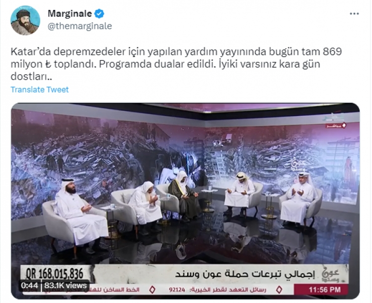 Katar Televizyonu, bugün depremzedeler için "Yardım ve dayanak" ismiyle bir kampanya başlattı.