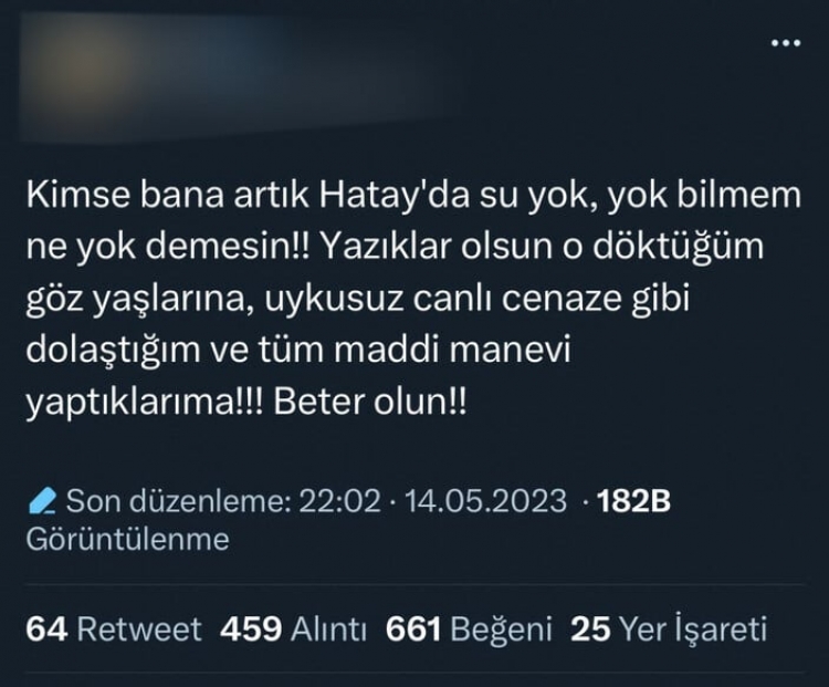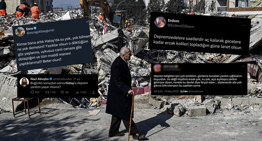 Deprem bölgelerinde Cumhurbaşkanı Erdoğan ve AK Parti'ye olan yönelimden rahatsız olan bazı muhalifler, depremzedeleri hedef alan paylaşımlar yapmaya başladı.