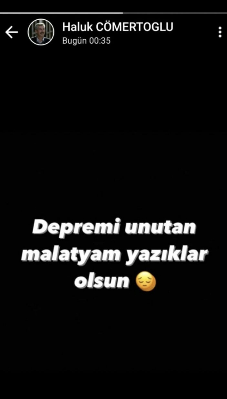 Sosyal medya hesabından paylaşım yapan Haluk Cömertoğlu, "Depremi unutan Malatya'm yazıklar olsun" dedi.