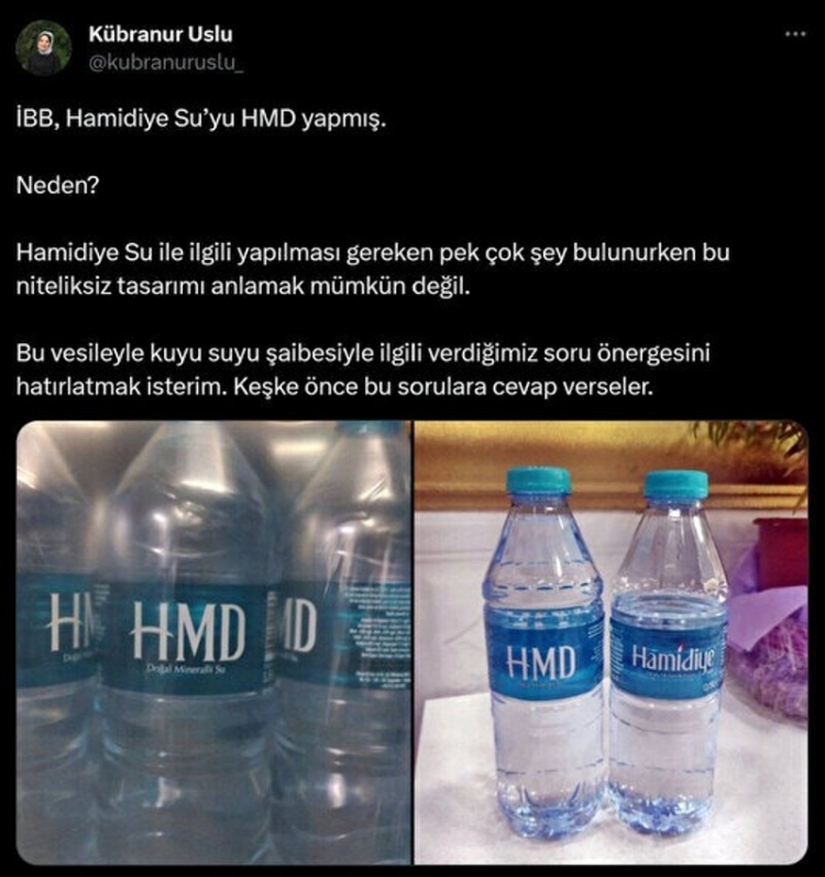 İstanbul Büyükşehir Belediyesi (İBB) iştirak şirketi Hamidiye A.Ş. tarafından satılan ve asırlık geçmişi bulunan su markası "Hamidiye"nin adının "HMD" olarak değiştirildiği iddiası sosyal medyada tepkilere neden oldu.