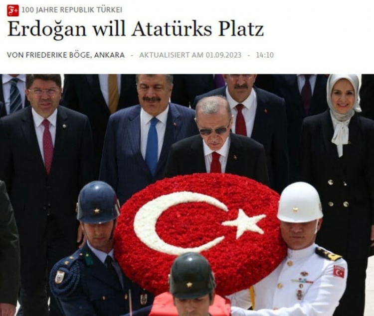 Frankfurter Allgemeine Zeitung, "Erdoğan, Atatürk'ün yerini istiyor" diye yazdı.