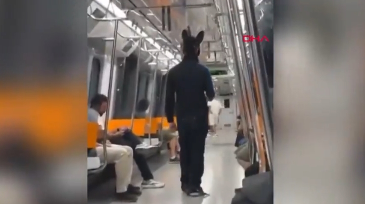 Sarıyer'de metroda elinde tüfekle gezen tavşan kostümlü kişi gözaltına alındı