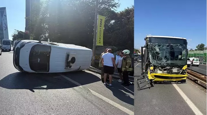 Beşiktaş, TEM Otoyolu bağlantı yolunda aynı istikamete giden İETT otobüsü ile kapalı kasa minibüs çarpıştı. Kaza sonucu minibüs devrilirken, otobüste bulunan kadın yolcu yaralandı.