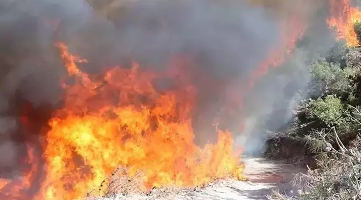 Manisa'nın Şehzadeler ilçesinde orman yangını çıktı. Alevlere havadan ve karadan müdahale sürdürülüyor.