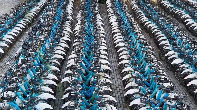 Havadan çekilen görüntülerde, binlerce bisikletin depolara ve boş arazilere taşındığı, istasyonların ise bakımsızlıktan zarar gördüğü ortaya çıktı.