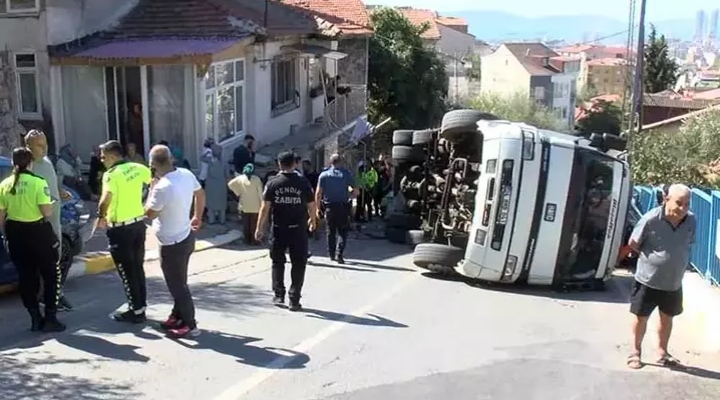 Pendik'te yokuşu çıkamadığı öğrenilen traktör yüklü kamyon, geri geri giderek önce yoldaki iki araca, ardından bir gecekonduya çarparak devrildi. Yaralanan kamyon şoförü hastaneye kaldırılırken polis ekipleri kazaya ilişkin inceleme başlattı.