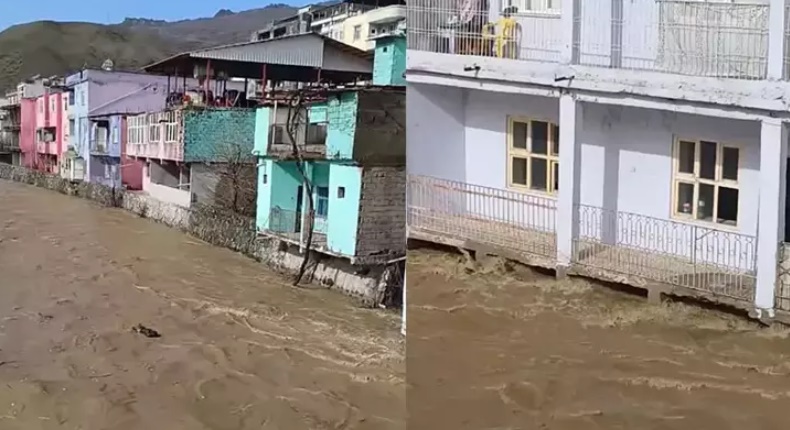 Çayın seviyesi yükseldi; su kıyıdaki evlerin giriş kat balkonlarına ulaştı