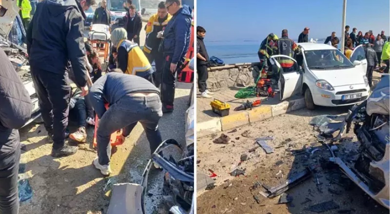 Kaza, öğle saatlerinde Ayvalık ilçesi 15 Eylül Caddesi'nde meydana geldi. Sürücüleri henüz öğrenilemeyen 10 ATU 131 plakalı otomobil ile 17 ES 184 plakalı otomobil çarpıştı. Kazada 6 kişi yaralandı. İhbar üzerine kaza yerine sağlık, polis ve itfaiye ekipleri sevk edildi. Araçlarda sıkışan yaralılar itfaiye ekipleri tarafından kurtarılarak ambulanslarla çevre hastanelere kaldırıldı. Yaralıların tedavisinin sürdüğü bildirildi.