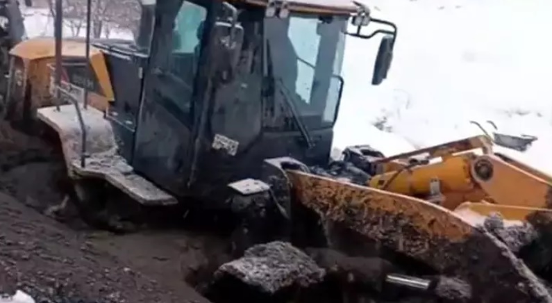 Bitlis'in Ahlat ilçesine bağlı Nazik köyü yolunda karla mücadele çalışması yapan İl Özel İdaresi’ne ait iş makinesi çamura saplandı. Bölgeye sevk edilen ekipler, iş makinesini ve operatörü kurtardı.