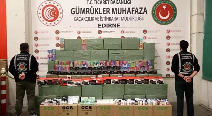 Ticaret Bakanlığı'ndan yapılan açıklamaya göre; Türkiye’ye giriş yapmak üzere Kapıkule Gümrük Sahası'na gelen TIR, Ticaret Bakanlığı Gümrükler Muhafaza ekiplerince risk kriterleri kapsamında kontrol edildi. Detaylı arama ve kontrollerde; faturasız, belgesiz, gümrüğe beyan edilmeyen 10 bin 400 adet elektronik sigara, 720 bin sigara filtresi, 84 oto parçası, 215 kutu vitamin ve kişisel bakım ürünü, 2 bin 520 ilaç cinsi eşya ele geçirildi. Söz konusu eşyaların gümrüklenmiş değerinin 33 milyon 179 bin TL olduğu belirlendi.