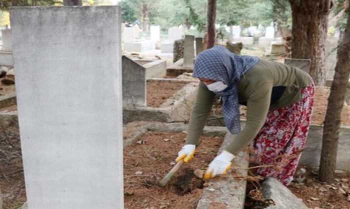 Her gün kalkıp mezarlığa giderek temizlik yapıyorlar
