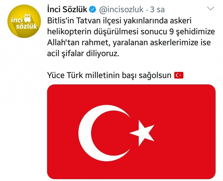 İnci sözlük Türkiye'nin yüreğine kor gibi düşen şehit haberinin ardından yeni bir skandala imza attı.