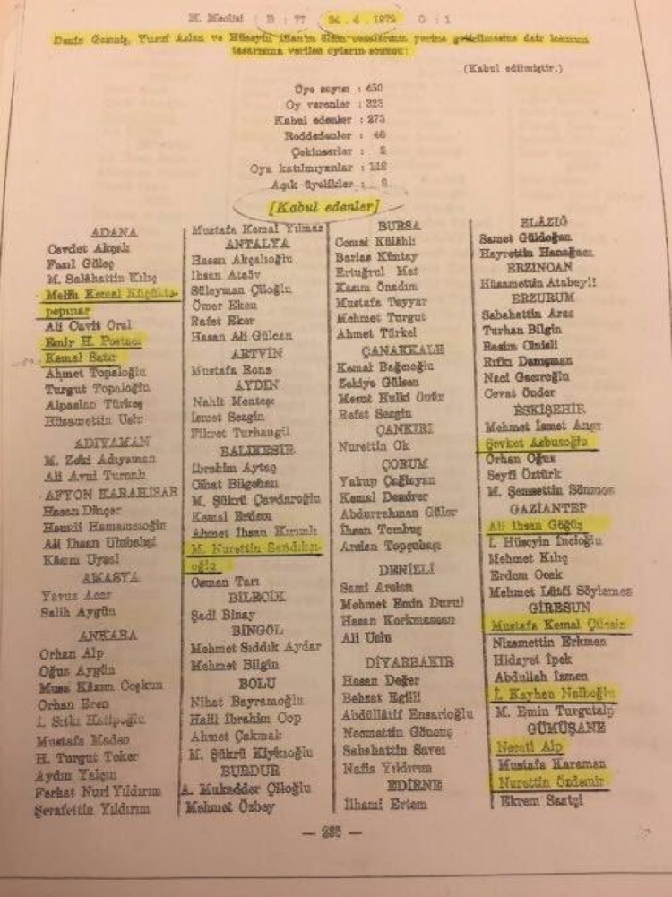 Bu sayı, CHP'li milletvekillerinin oylarıyla tamamlandı. Buna göre CHP'den 30 evet, 47 hayır, 2 çekimser oy çıkarken; 52 CHP'li de oylamaya katılmadı.