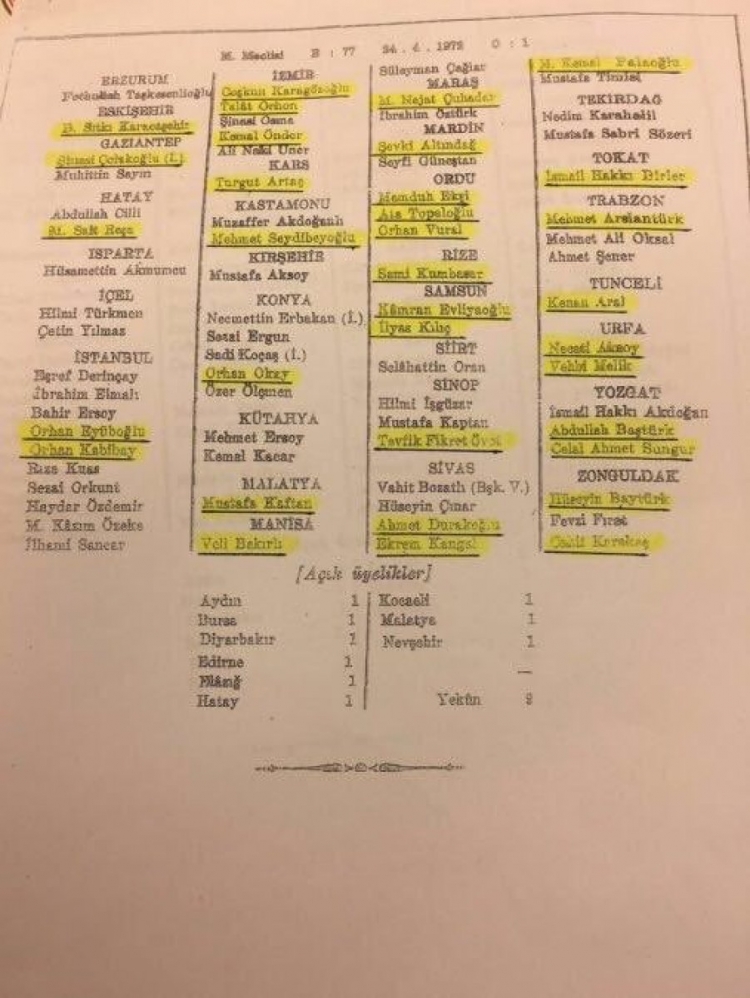 1972 yılında idam edilen Deniz Gezmiş ve arkadaşlarının idamına onay veren vekillerden 30'u, CHP'liydi.