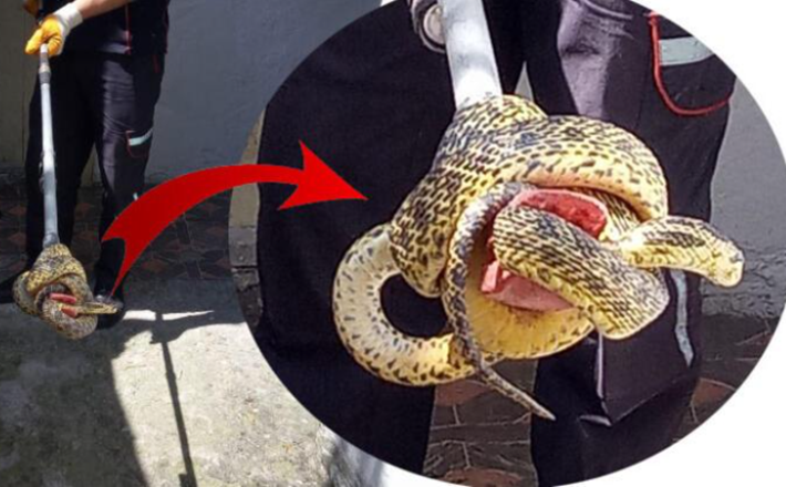 Büyük korku yaşayan ev sahipleri tanıdıkları Mehmet Altaş’tan yardım istedi. Eve gelen Altaş çekyat içindeki yılanı elleri ile yakaladı. Yılan evden çıkarılarak, doğaya bırakıldı.