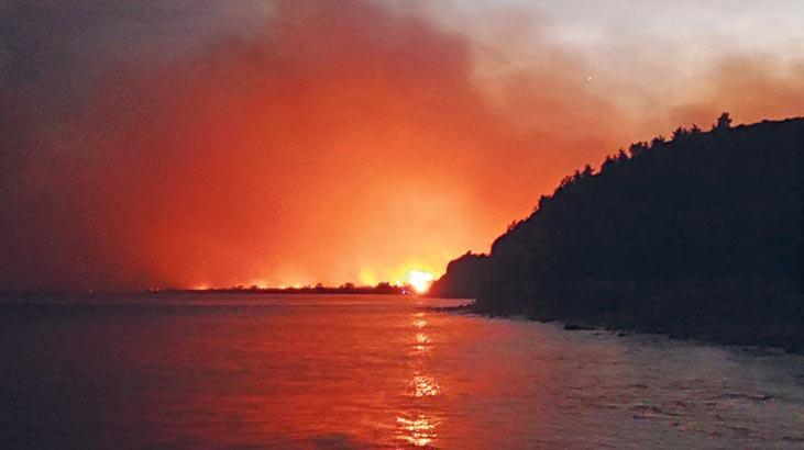 Muğla’nın Bodrum ilçesi Ören Mahallesi’nden yaklaşık 20 km uzaklıktaki Bozcalı ile Çökertme Koyu arasında çıkan büyük yangın devam ediyor.