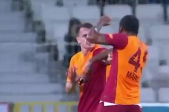 Galatasaray'da Marcao ve Kerem Aktürkoğlu arasında tartışma çıktı! Marcao takım arkadaşında önce kafa ve tokat atınca kırmızı kart gördü.