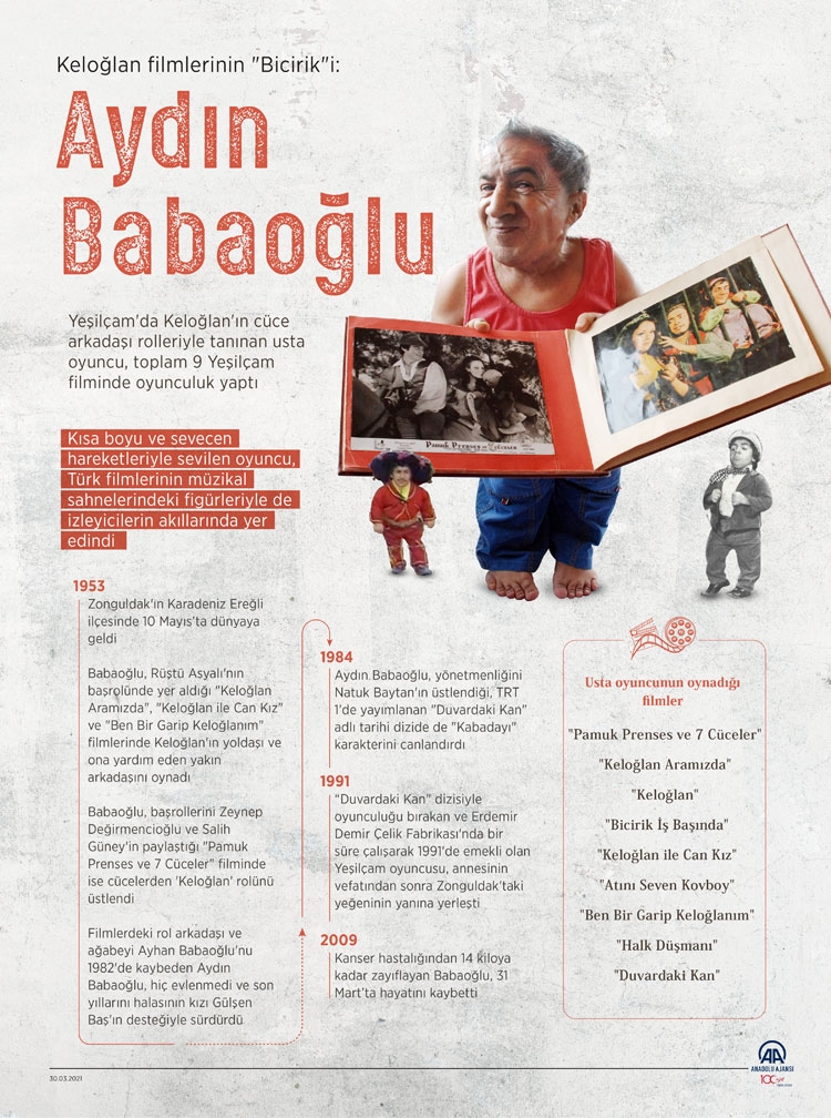 Yeşilçam'da Keloğlan'ın cüce arkadaşı rolleriyle tanınan oyuncu Aydın Babaoğlu'nun vefatının üzerinden 12 sene geçti.