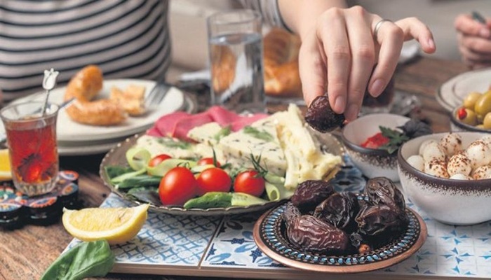 ET VE SEBZE DENGESINI SAĞLAYIN: İftar öğününde sebze ve et yemeği ile alkali dengesi sağlanmalıdır. Salata öğünde bulunmalı ama sadece zeytinyağı ve limon ile tatlandırılmalıdır. İnsülini tetikleyen pirinçli gıdalar, pide, makarna gibi işlenmiş rafine karbonhidratların öğünlerde tüketilmemesi gerekir. Yemeklerden sonra yenen ağır tatlılar sindirim sisteminin yükünü artırır. Yemekten 1–2 saat kadar sonra sütlü tatlı yenilebilir ancak meyve tercih edilmelidir.