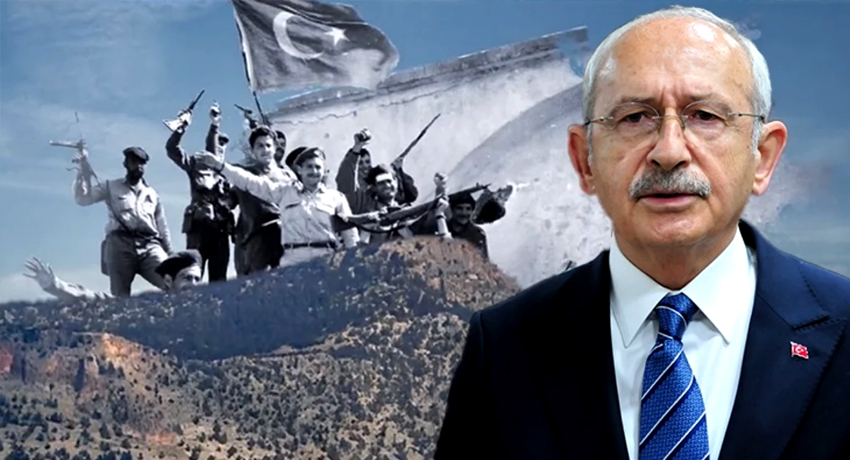 Kılıçdaroğlu, "Biz bu devleti kuran bir gelenekten geliyoruz. Bunlar CHP'yi bilmiyorlar ve karalamaya çalışıyorlar. Orada söz konusu olan Kıbrıs çıkarması sırasında EOKA'cıların nasıl gömüldüklerini anlatan bir karedir o çünkü önce onlar gösteriliyor. Arkasından nasıl gömüldüklerini ve arkasından Türk bayrağını gösteriyor. Şimdi bunu alıp da o fotoğraf üzerinden troller üzerinden CHP'ye saldırmak kadar akıl dışı bir şey olamaz." diye konuştu.